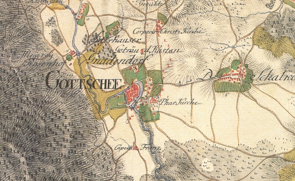 Der Ortsname des Dorfes Gottschee wird erstmals in der Urkunde des Patriarchen von Aquileia im Jahre 1363 erwähnt. Im Jahre 1377 bekam Gottschee Marktrechte.